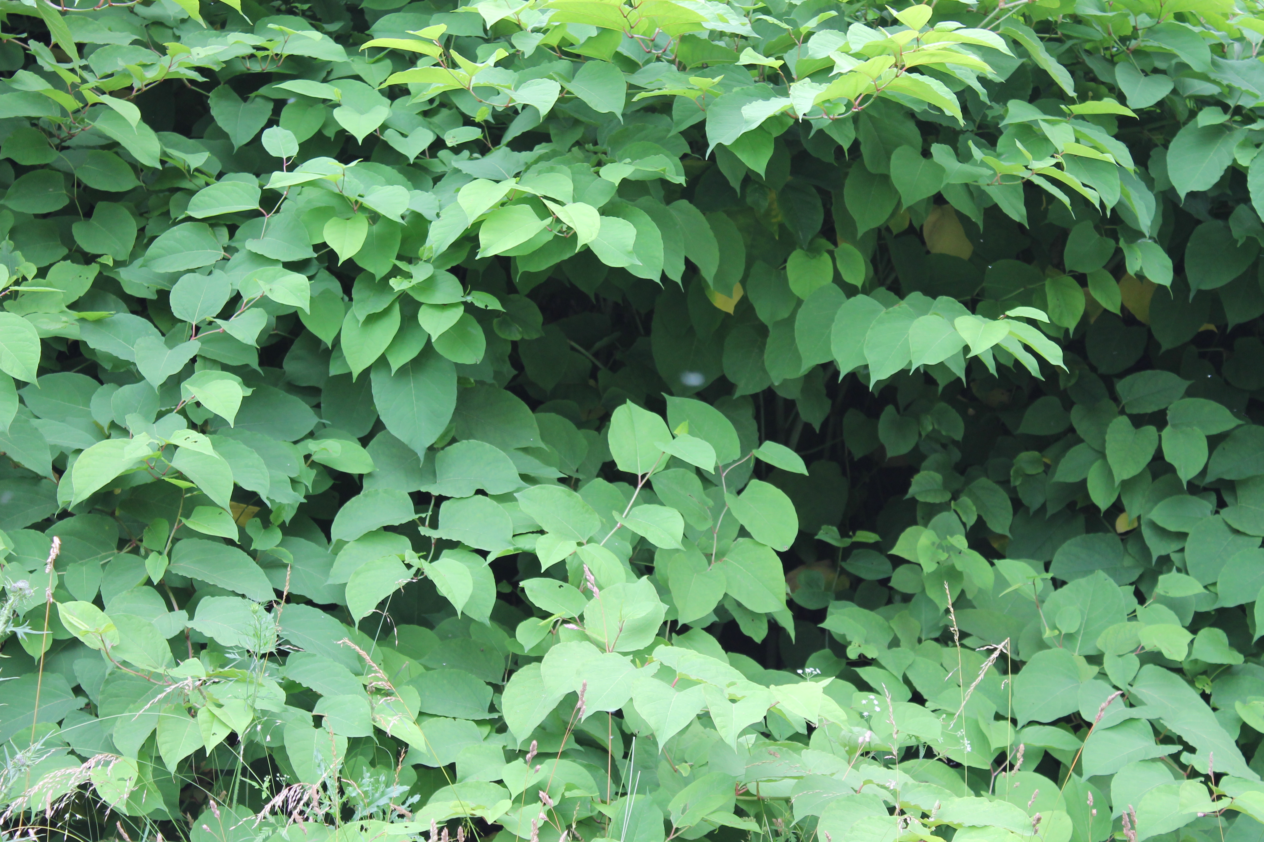 Très vite, la Renouée du Japon a été reconnue comme étant une espèce invasive. En effet, hors de son aire d’extension, la Renouée du Japon s’est retrouvée sans aucun prédateur et sans aucune plante compétitive. Possédant un développement rapide, son expansion s’est effectuée au détriment de la flore locale et indirectement sur la faune, impactant très fortement la biodiversité du territoire. Très présente le long des cours d’eau, la Renouée du Japon peut également se trouver le long des axes de transports (voies ferrés, axes routiers, etc.).