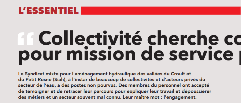 Afin de dépoussiérer l’image de la fonction publique et de faire connaître les métiers et les compétences des services de l’eau, le Siah, syndicat spécialisé dans les domaines de l’assainissement et de la