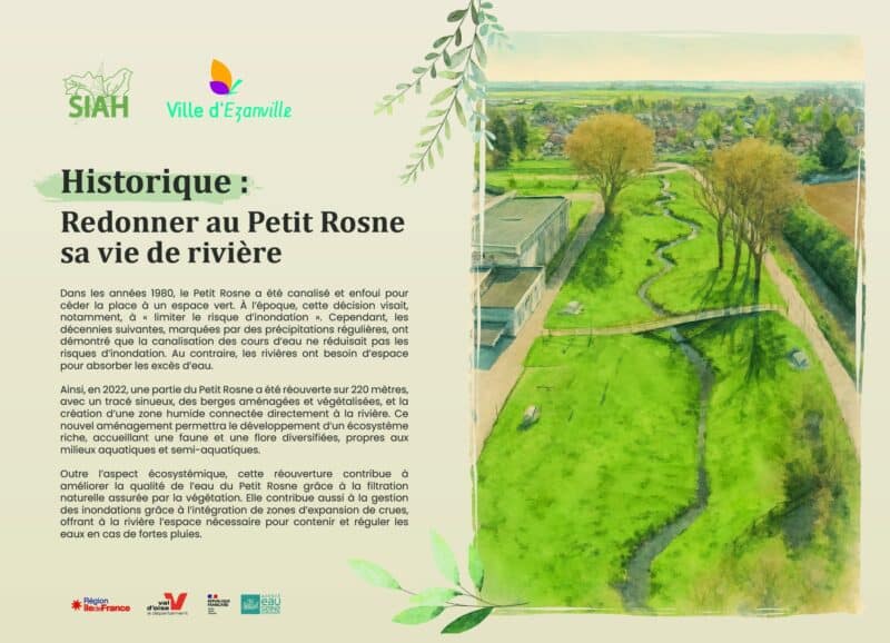 Ces panneaux ont pour objectif de mieux faire connaître au public la richesse écologique du Petit Rosne et d’accompagner les visiteurs dans la compréhension des transformations menées par le SIAH.